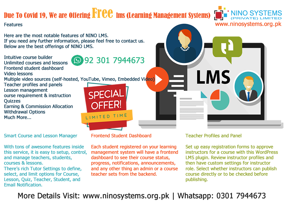Here are the most notable features of NINO LMS . If you need any further information, please feel free to contact us. Below are the best offerings of Tutor LMS.